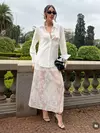 Pura elegância com um toque de ousadia sutil: A Saia Desire é uma peça que exala sofisticação e modernidade. Com comprimento midi e modelagem reta, ela traz o equilíbrio perfeito entre transparência e delicadeza, graças à renda floral refinada que revela a pele de forma elegante e contemporânea.